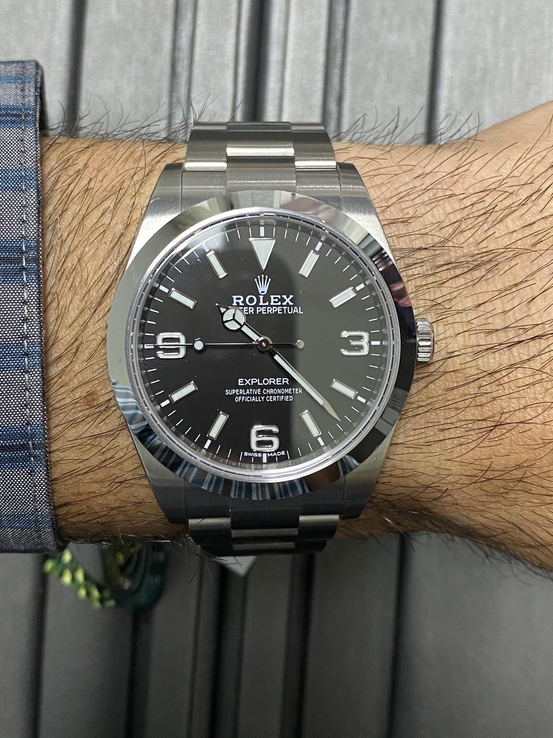 With rolex you're better off going with their newest version of everything.. I'm looking to wear it to work with dress clothes and just an all around watch for when i don't feel like wearing my 2. I tried a 36mm alpha explorer and it was too small. 36mm is great if your wrist can cope with a smaller watch. This is on my relatively flat 6.5" wrist. Size is obviously important, but no one has mentioned that the 39mm has an improved movement over the 36mm. I bought a tudor black bay 36 for work so i wouldn't bang up my explorer and now i feel the 39mm as large on my wrist lol my question is would it be crazy on my part to sell my 39mm explorer to buy the 36mm explorer would wait for ad not buying grey market overpriced watches. With rolex you're better off going with their newest version of everything. Just figured i'd share these pics for anyone who is trying to decide between sizes. When i got it i was coming from a 42mm watch and thought the 39mm exp seemed small. Question explorer 39mm vs 36mm.. Side by side, the 39mm does look chunkier, but on the wrist it's very elegant.